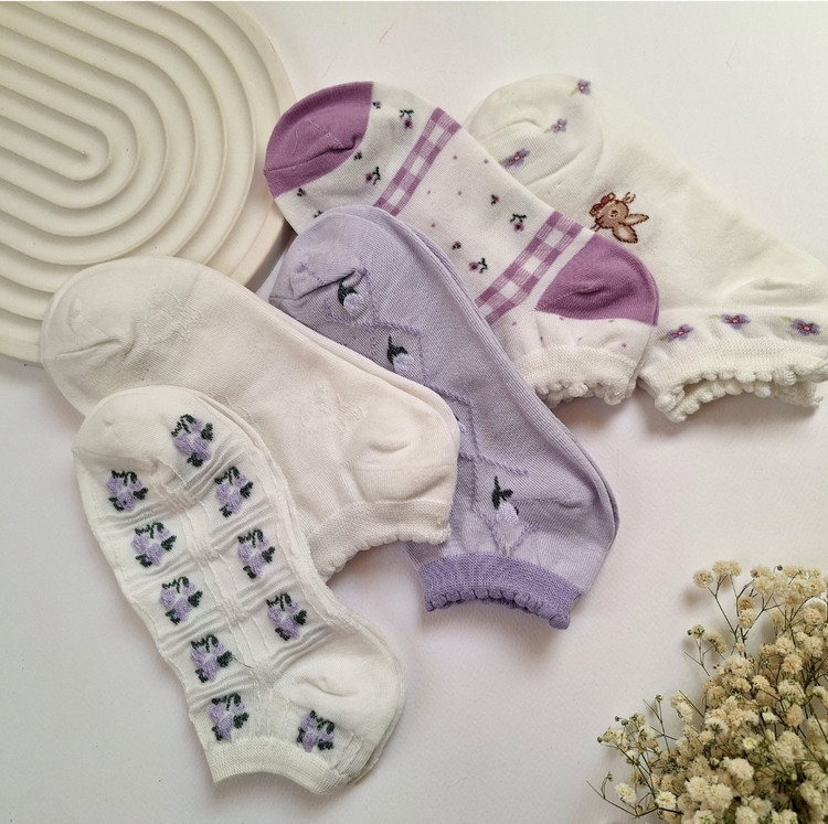 جوراب مچی نخی فانتزی دخترانه گلدوزی خرگوشی یاسی