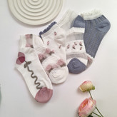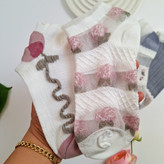 جوراب مچی نخی فانتزی دخترانه سوزنی بافت گل شیک
