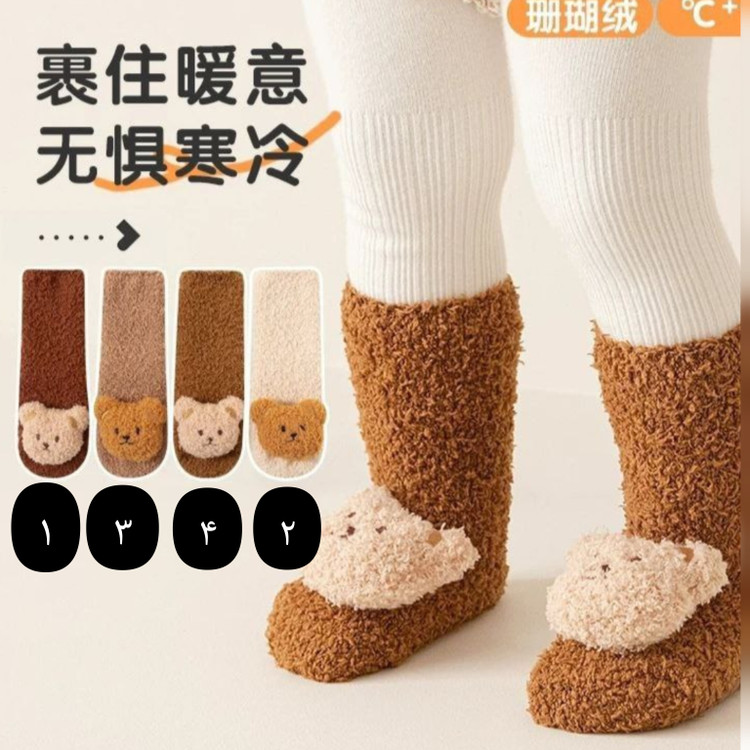 جوراب پشمی نوزادی و بچگانه تدی بوکله کرم قهوهای استوپ دار