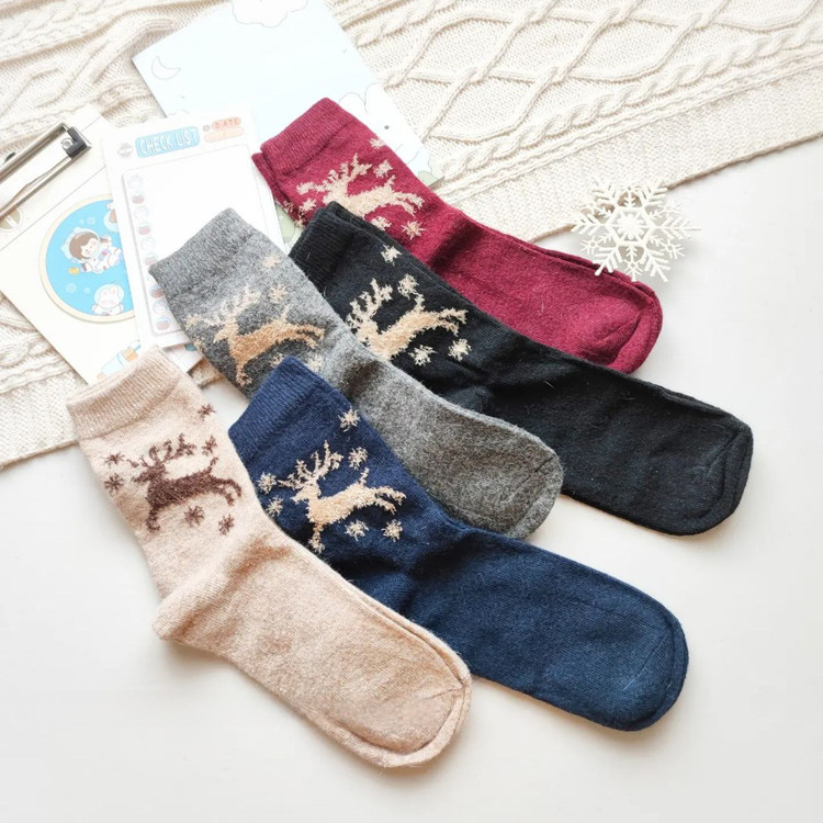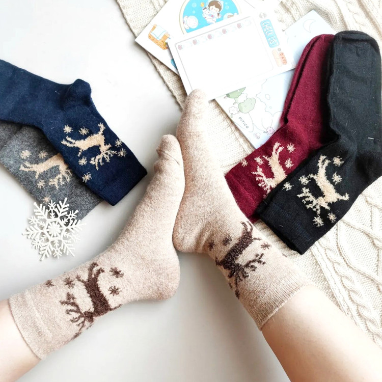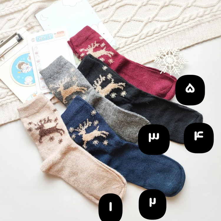 جوراب ساقدار بافت پشمی زنانه گوزن کریسمسی