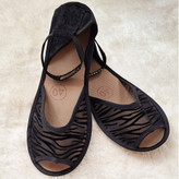 پاپوش مجلسی زنانه مشکی کفه چرم طرح پلنگی مخملی