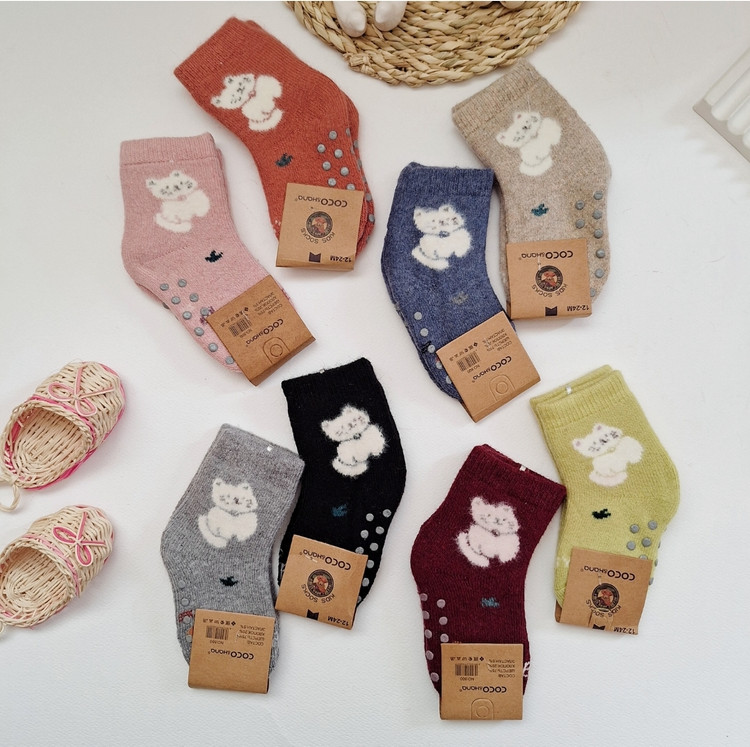 جوراب بافت نوزادی - بچگانه داخل حوله ای طرح پیشی کد ۱۰۱۲۰
