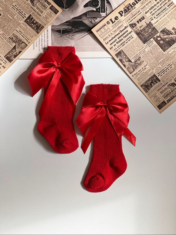 جوراب ساقدار نوزادی _بچگانه قرمز یلدایی پاپیونی
