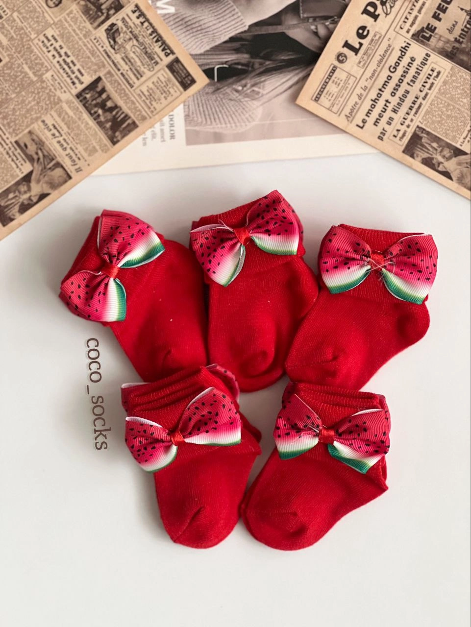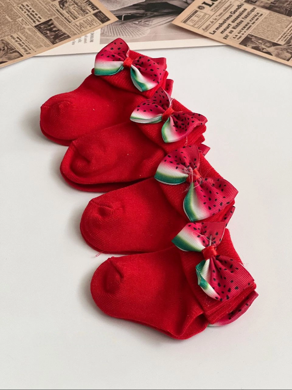 جوراب مچی نوزادی _بچگانه قرمز یلدایی پاپیونی هندونه ای کد۲۱