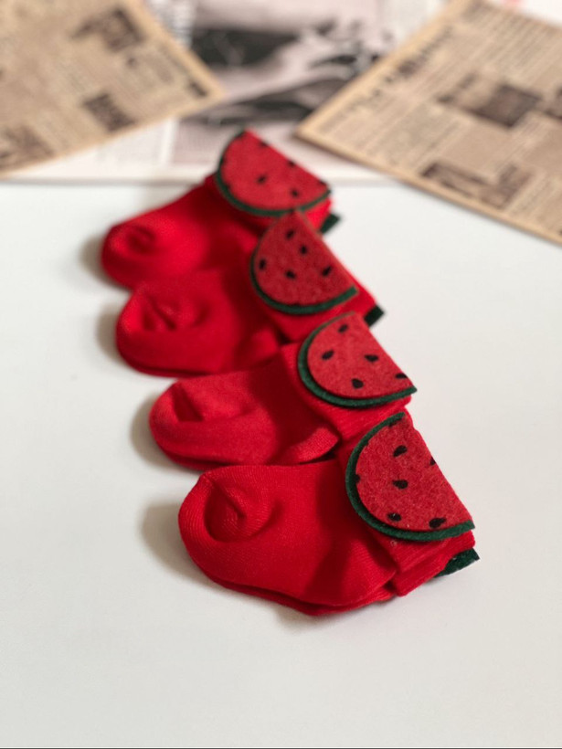 جوراب مچی نوزادی _بچگانه قرمز یلدایی هندونه ای کد ۲۳
