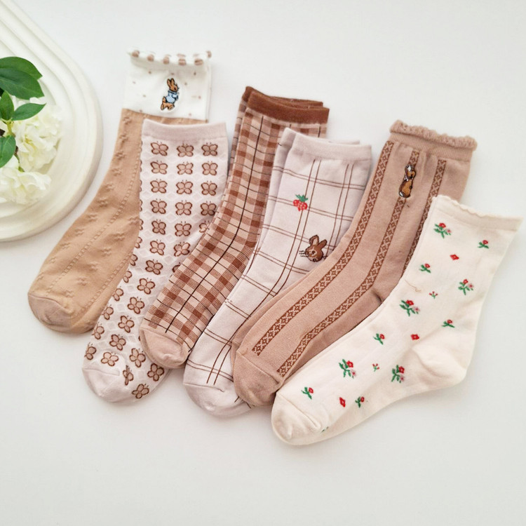 جوراب ساقدار زنانه فانتزی رنگ کرم قهوه ای