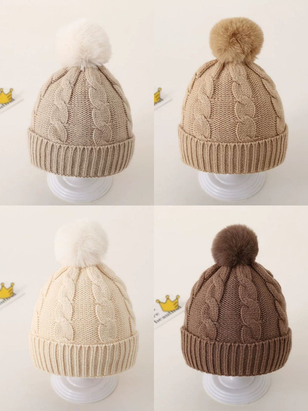 کلاه بافت بچگانه پوم دار گرم داخل آستردار وارداتی