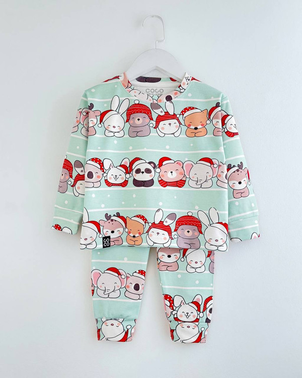 ست بلوز و شلوار راحتی تو خونگی نخ پنبه بچگانه طرح حیوانات برفی