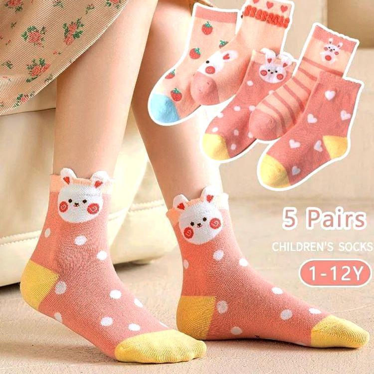جوراب ساقدار نخی بچگانه دخترانه گلبهی فانتزی