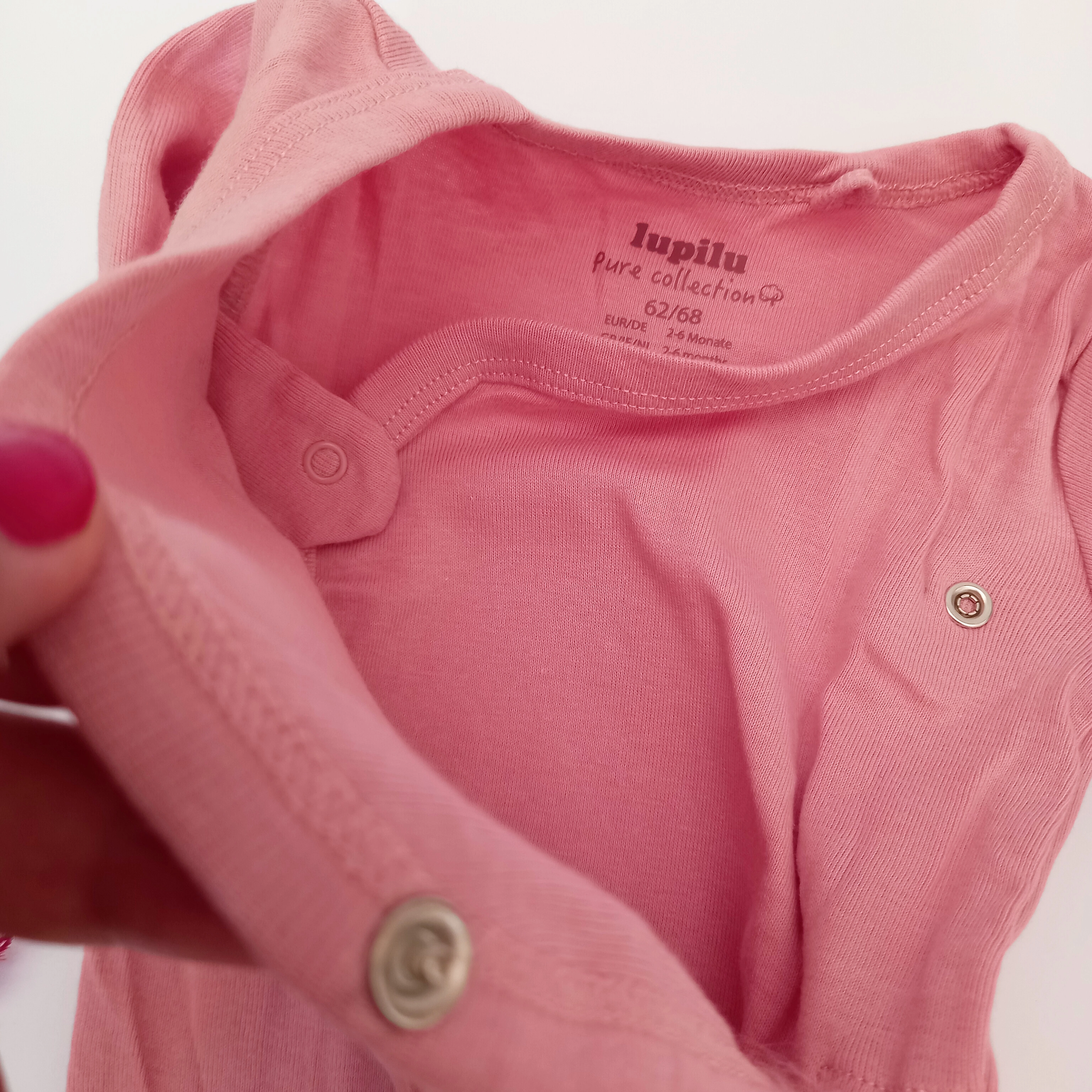 اندازه های سایز ۲ تا ۶ ماه: قد بادی: ۳۵ سانت، عرض سینه: ۲۰ سانت، قد آستین: ۲۴ سانت