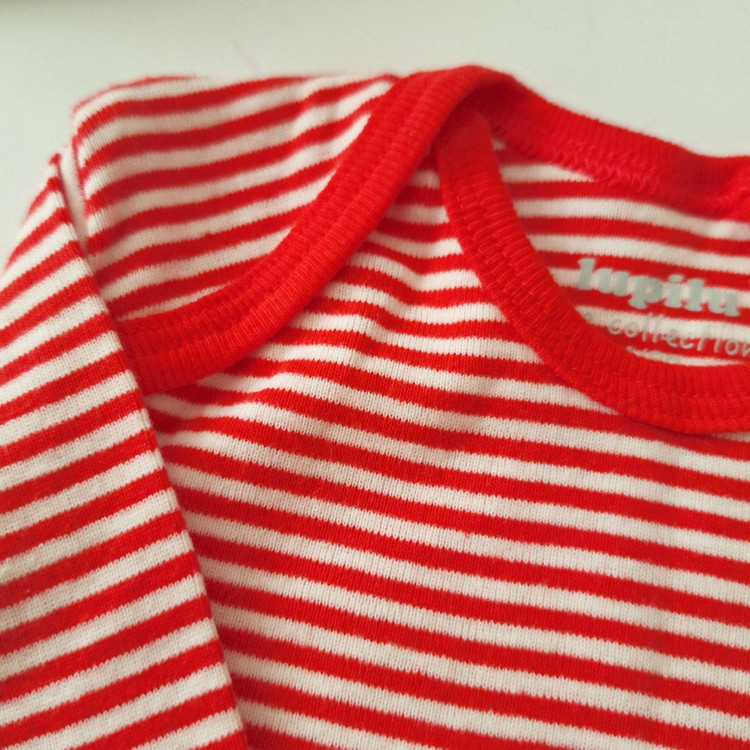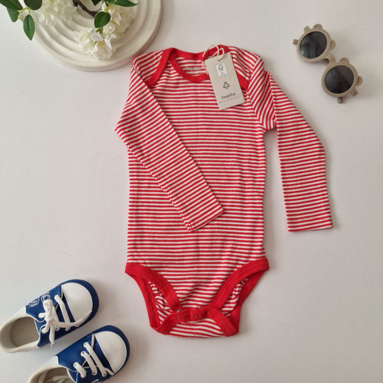 لباس بادی زیردکمه نوزادی آستین بلند قرمز راه راه لوپیلو