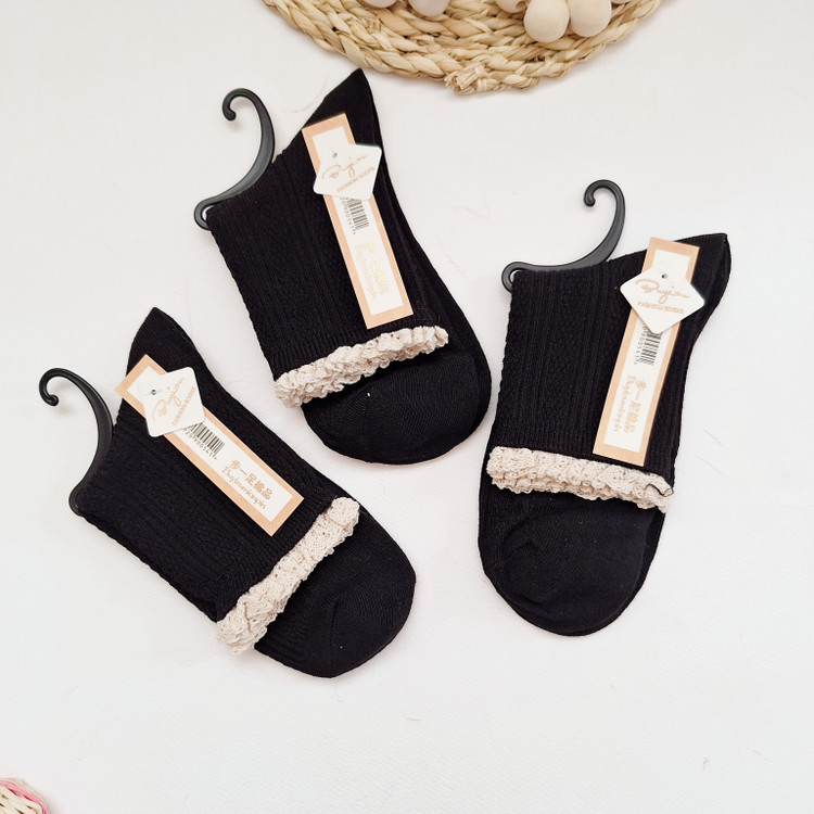 جوراب ساقدار زنانه مشکی کبریتی لب گیپوری مارکدار کد s 1209