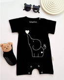 لباس رامپر زیردکمه نوزادی و بچگانه آستین کوتاه مشکی طرح فیل مهربون