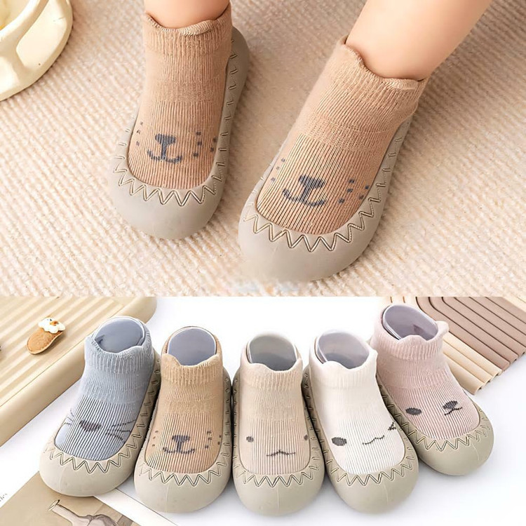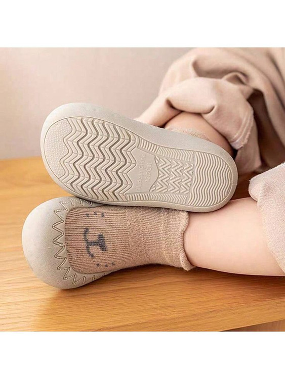 کفش جورابی نوزادی بچه گانه زیر سیلیکونی رنگ نود کرم قهوه ای مارک دار خارجی