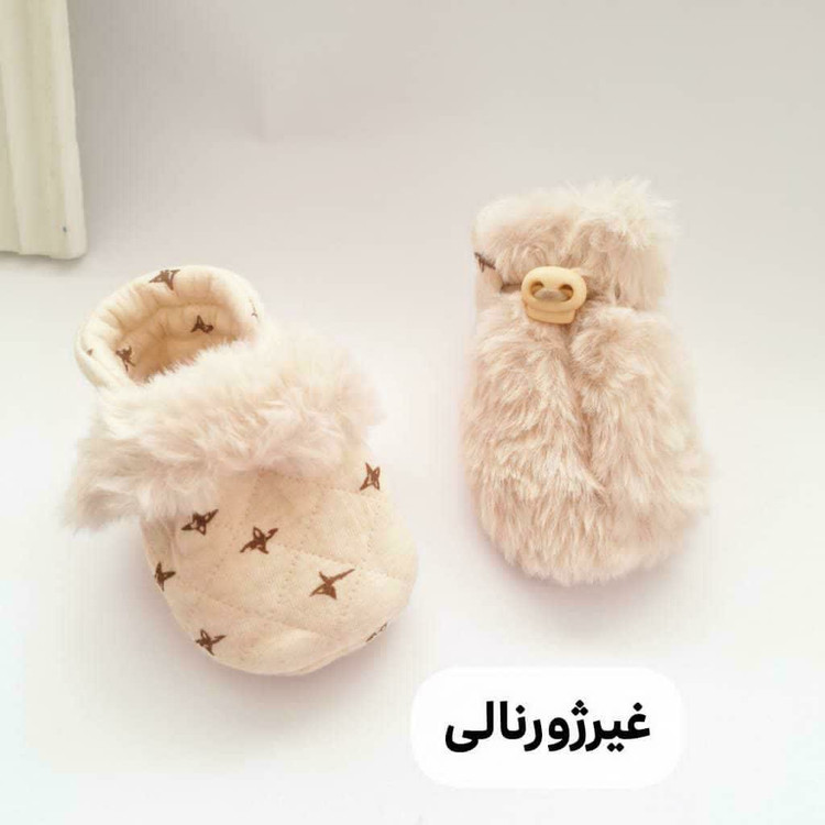 پاپوش زمستانی نوزادی بچه گانه دو رو خز و فوتر خارجی