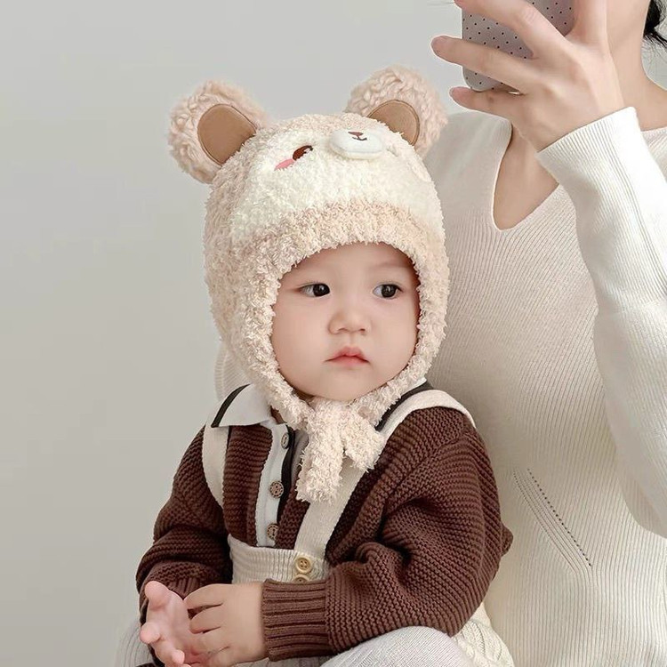 کلاه بچگانه زمستانی بوکله تدی گوشدار بنددار گره ای فانتزی شیک امسال کرم و قهوه ای