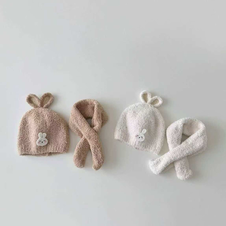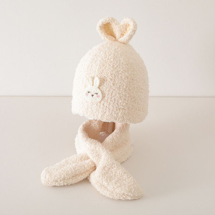 شال و کلاه بچگانه زمستانی بوکله اعلا وارداتی نرم و لطیف طرح خرگوش سفید و قهوه ای