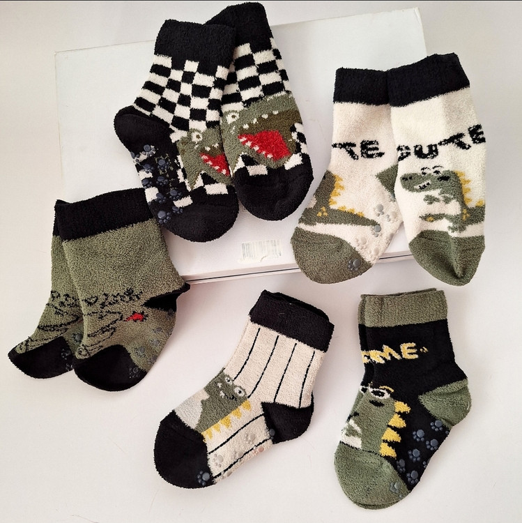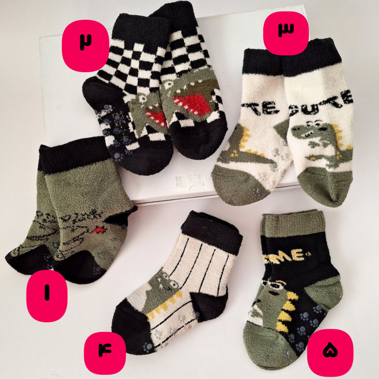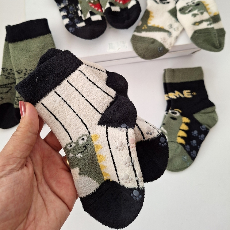 جوراب حوله ای نوزادی بچگانه نیمساق بوکله نرم و گرم کف ترمزدار مدل دایناسوری سایزبندی از ۲ تا ۱۰سال