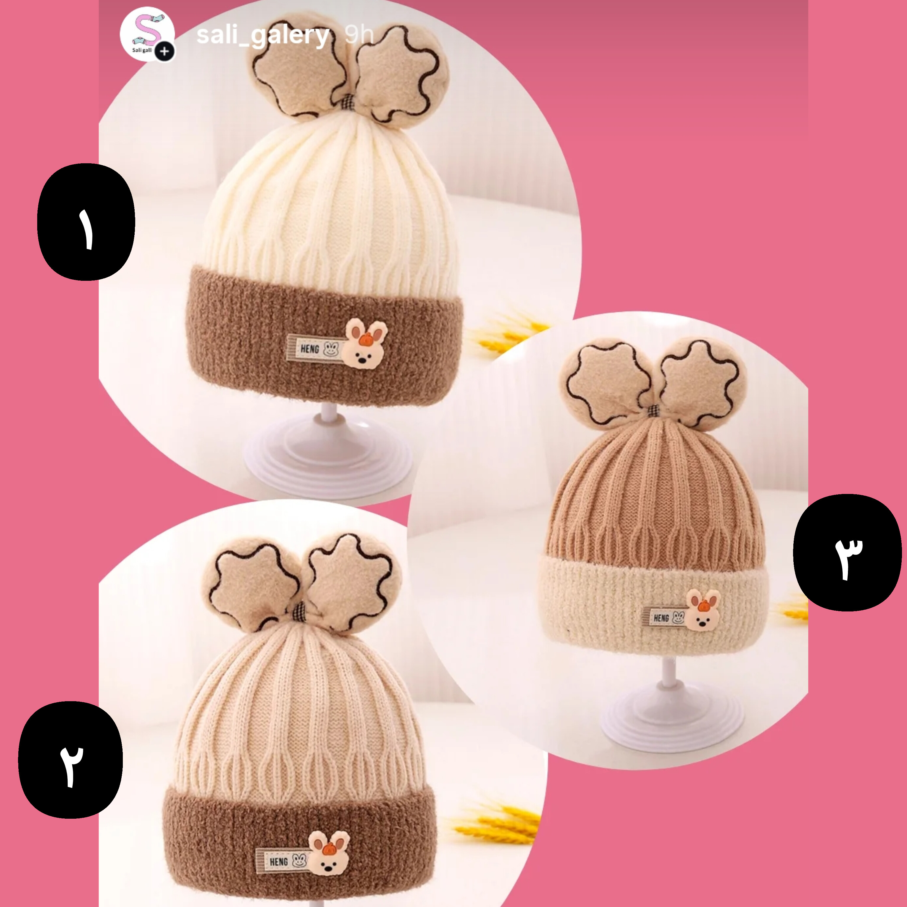 کلاه بافت دخترانه پاپیونی لبه پشمی آستردار فانتزی وارداتی