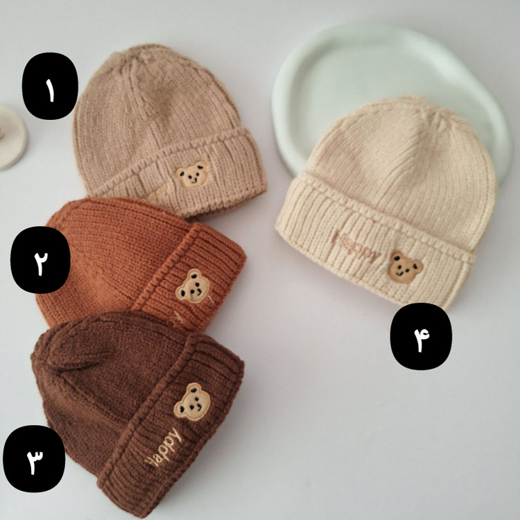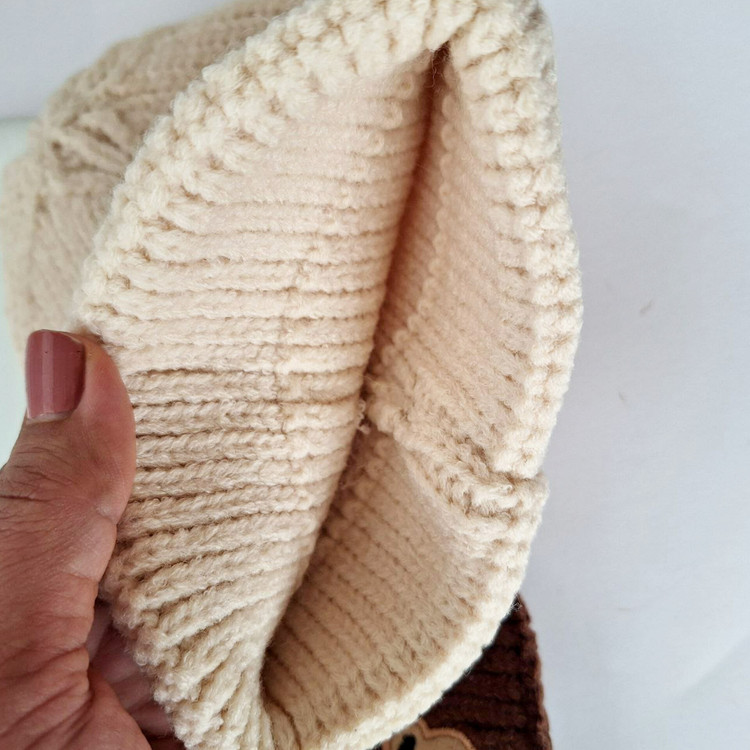 کلاه بافت بچگانه زمستانی گرم خرس تدی شیک کرم قهوه ای
