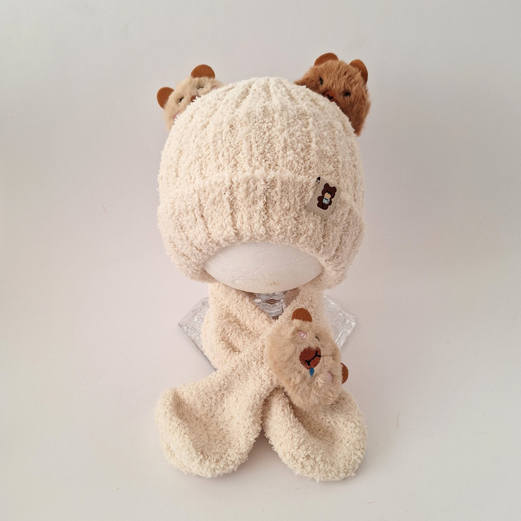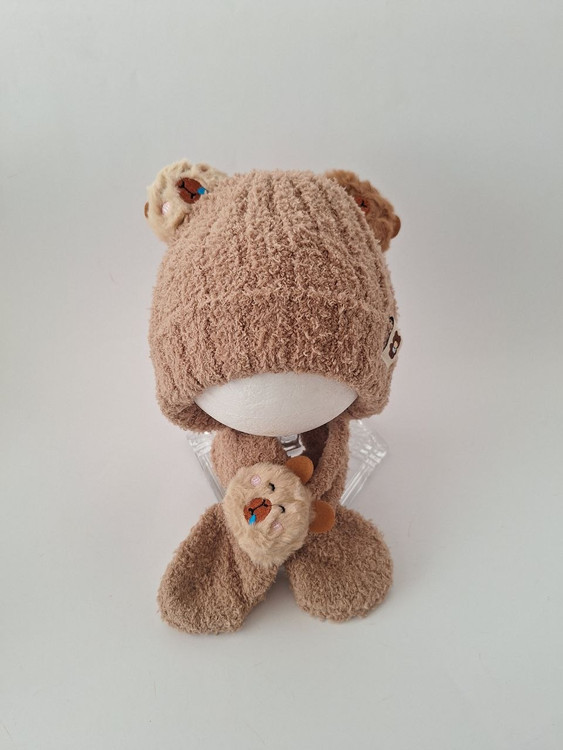 شال و کلاه بچگانه زمستانی بوکله اعلا وارداتی نرم و لطیف طرح تدی و پاندا رنگ کرم و قهوه ای