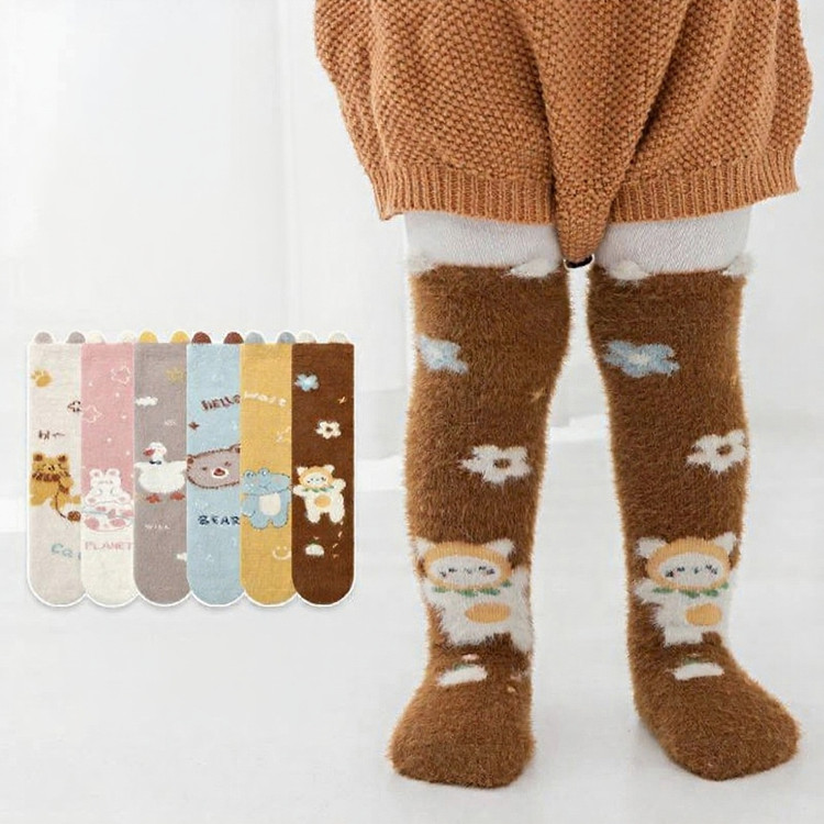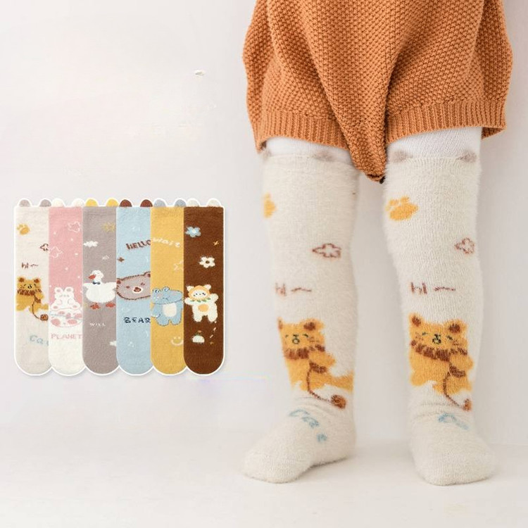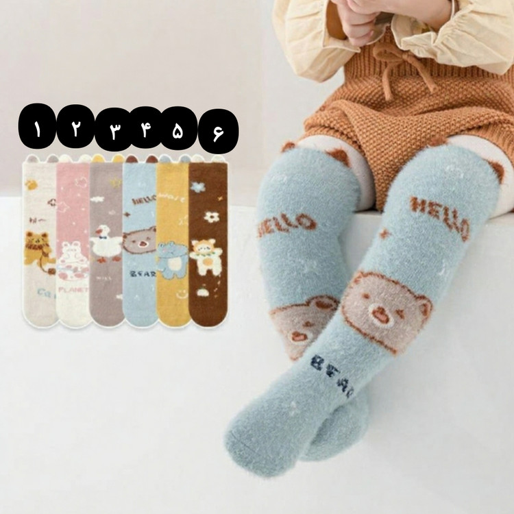 جوراب ساقدار نوزادی و بچگانه تمام حوله ای موهر گرم بدون پاشنه فری سایز مناسب ۱ تا ۴سال