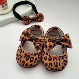 ست پاپوش کفشی و هدبند نوزادی و بچگانه دخترانه بند دار فانتزی پلنگی