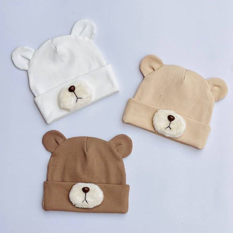 کلاه بچگانه پاییزی و بهاری تدی شیک سفید کرم قهوه ای دخترانه و پسرانه مناسب ۱ تا ۳سال