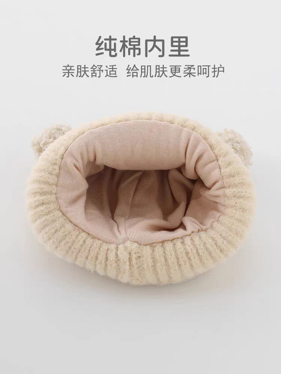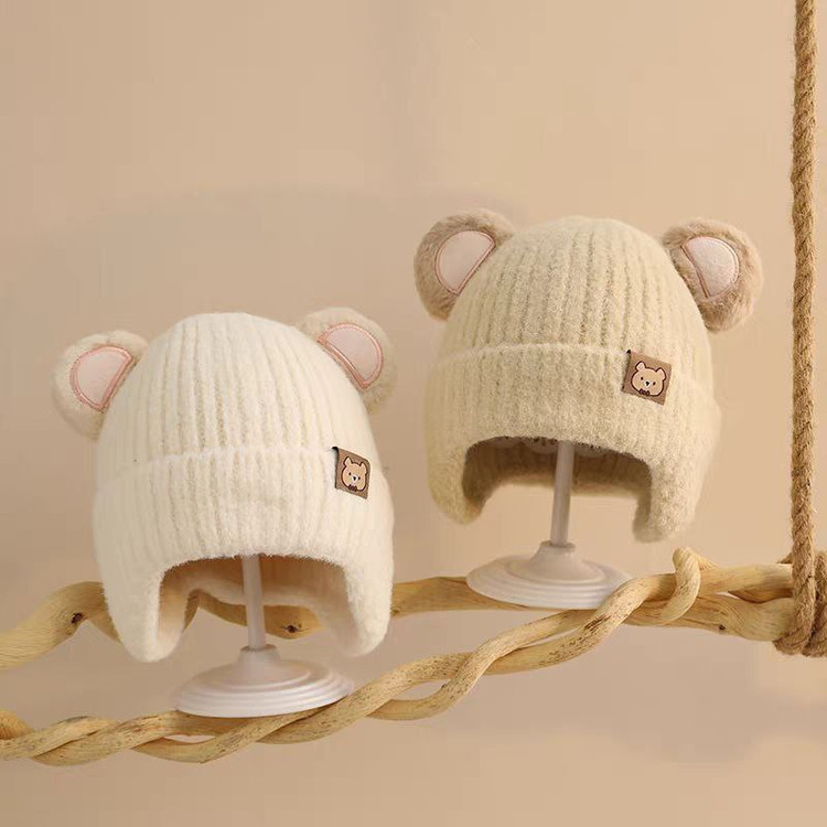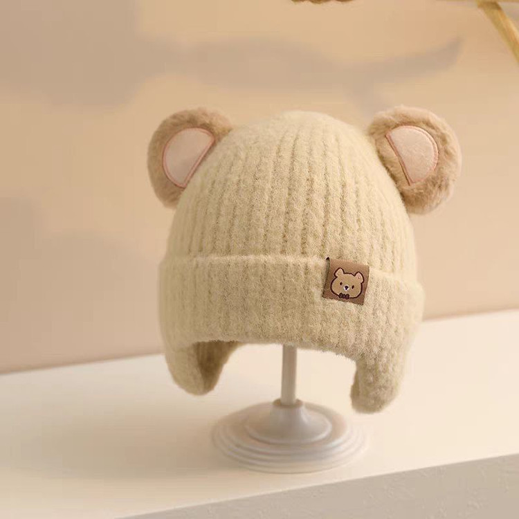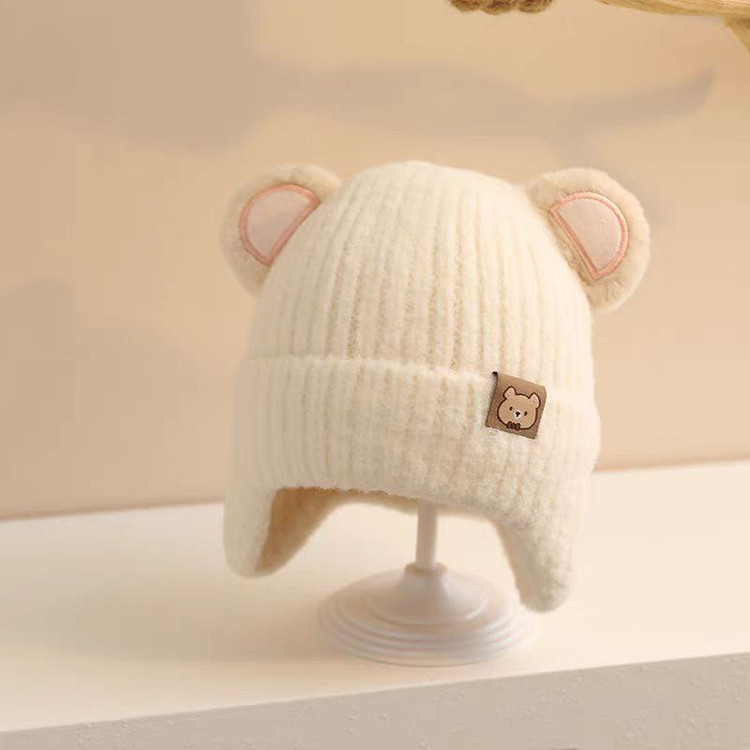 کلاه بافت زمستانی نوزادی و بچگانه ۱ تا ۳سال رنگ کرم قهوه ای سفید تدی شیک ترندگرم آستردار