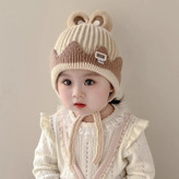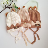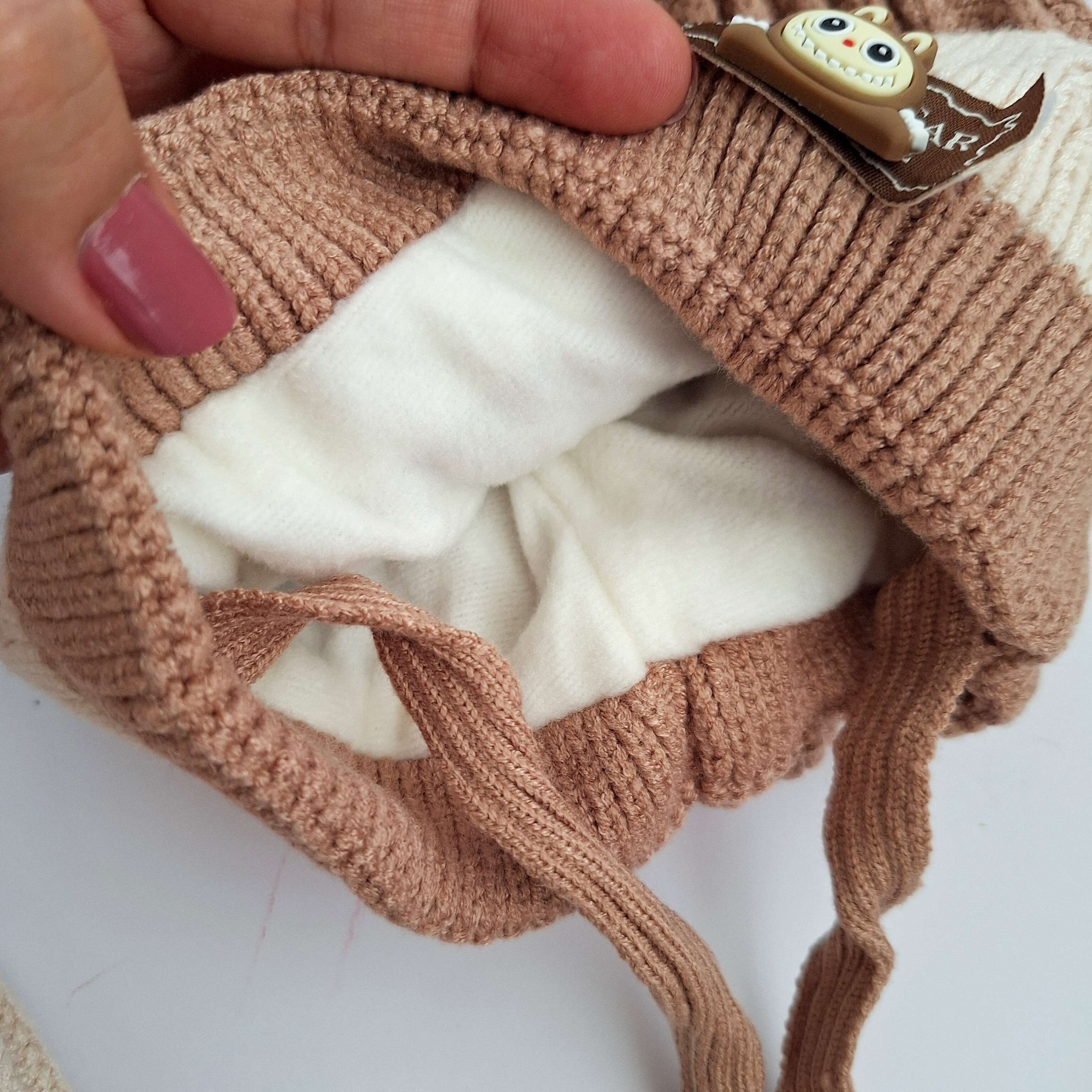 کلاه بافت زمستانی نوزادی بچگانه گوشدار پاپیونی دخترانه بنددار آسترداره ۸ ماه تا ۳ سال