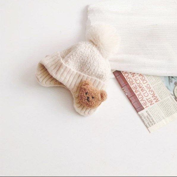 کلاه بافت زمستانی نوزادی بچگانه پومدار عروسکی تدی آسترداره ۱ ماه تا ۳ سال