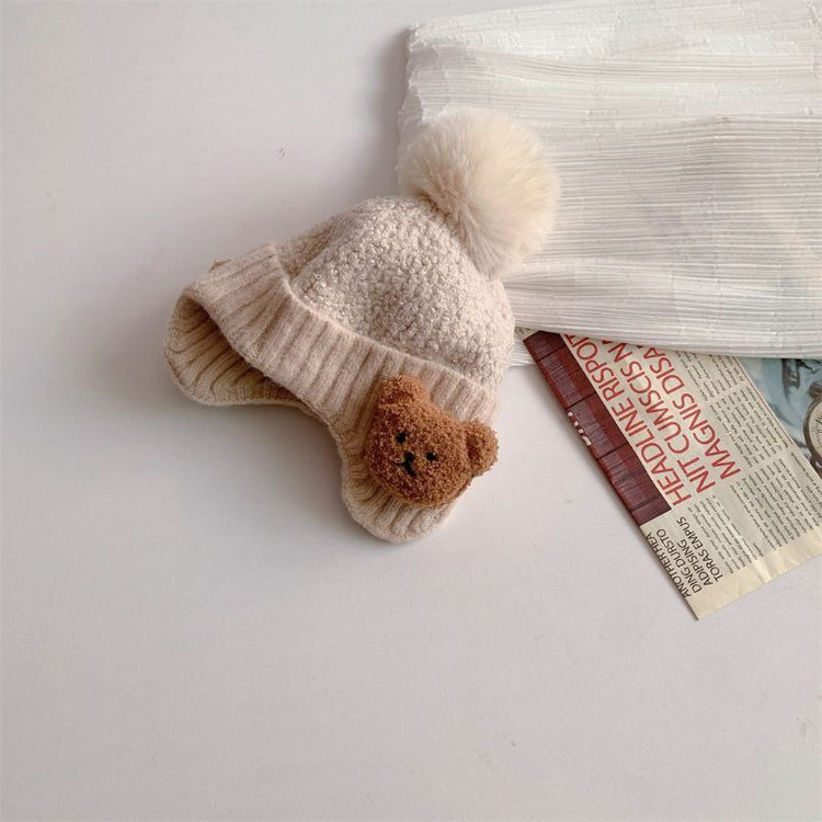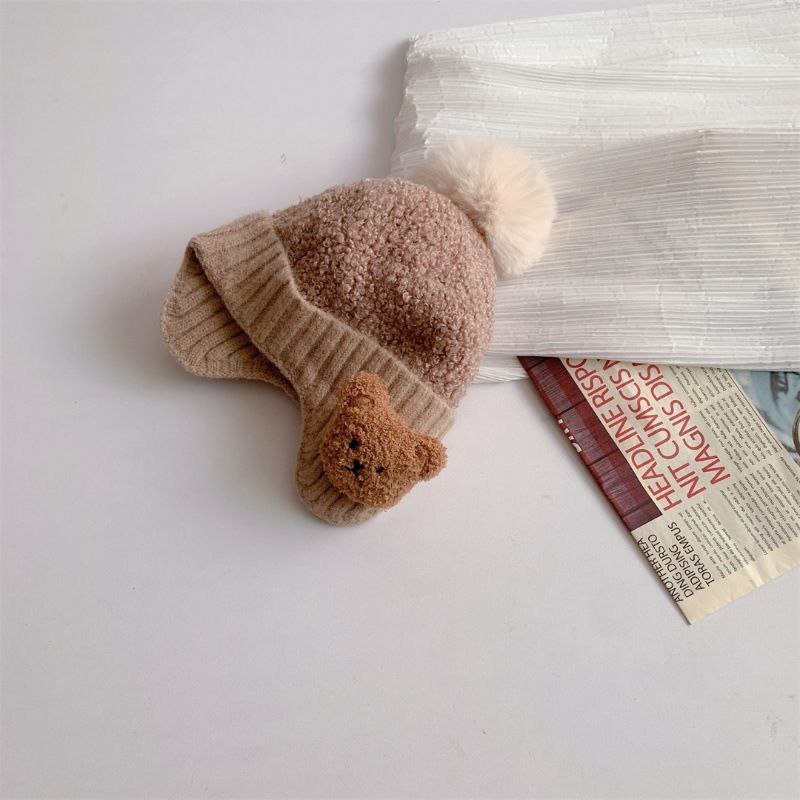 کلاه بافت زمستانی نوزادی بچگانه پومدار عروسکی تدی آسترداره ۱ ماه تا ۳ سال