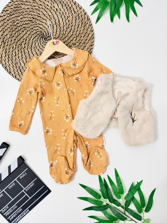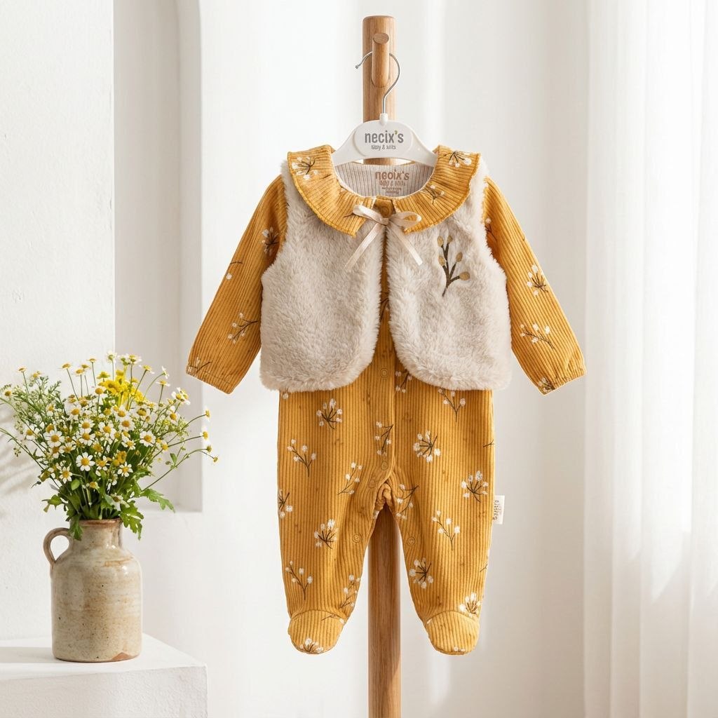 جلیقه: جلیقه جداشونده و جنس خز نرم و لطیف و گرم و میتونین جلیقه رو با لباسای دیگه کوچولوتون هم استایل کنین.