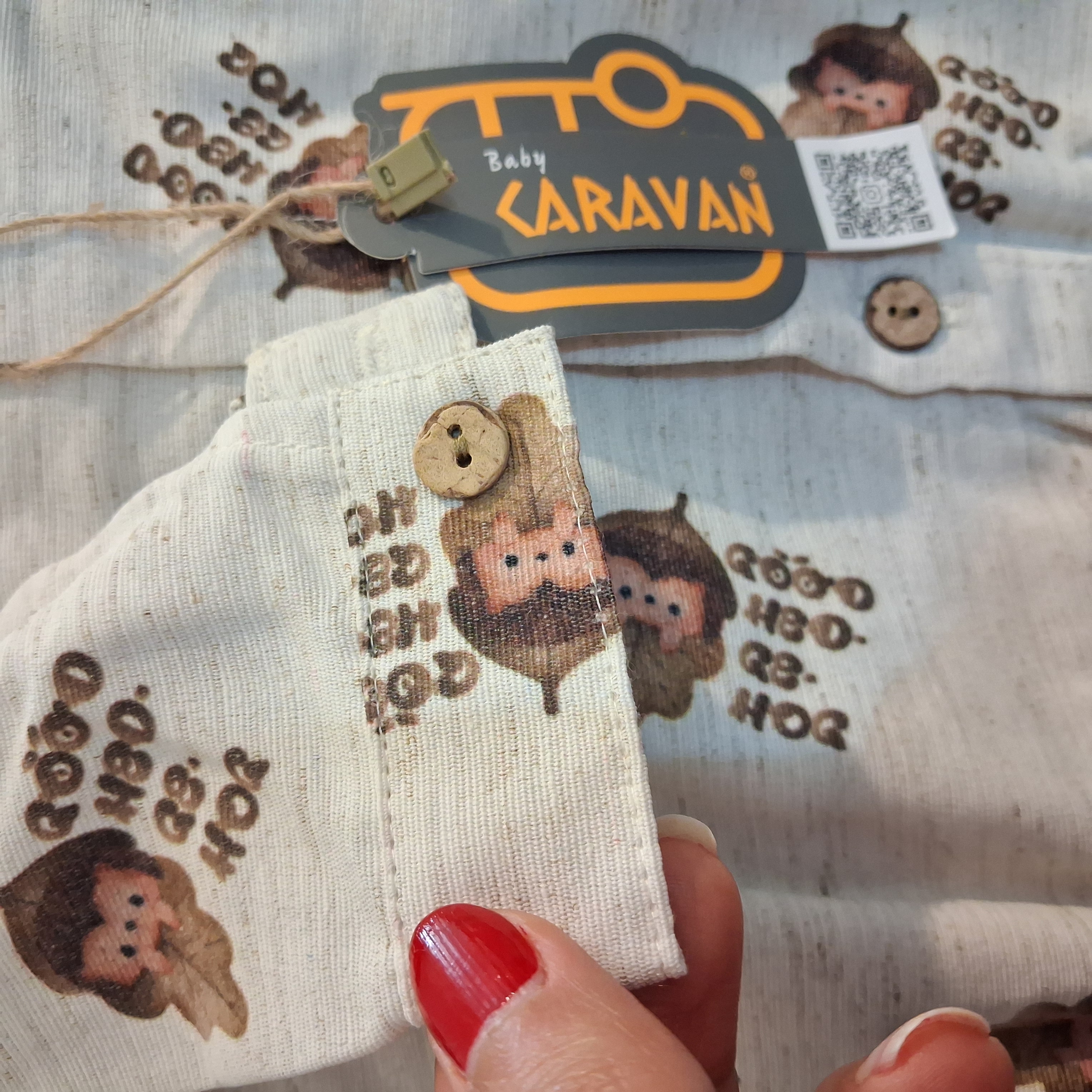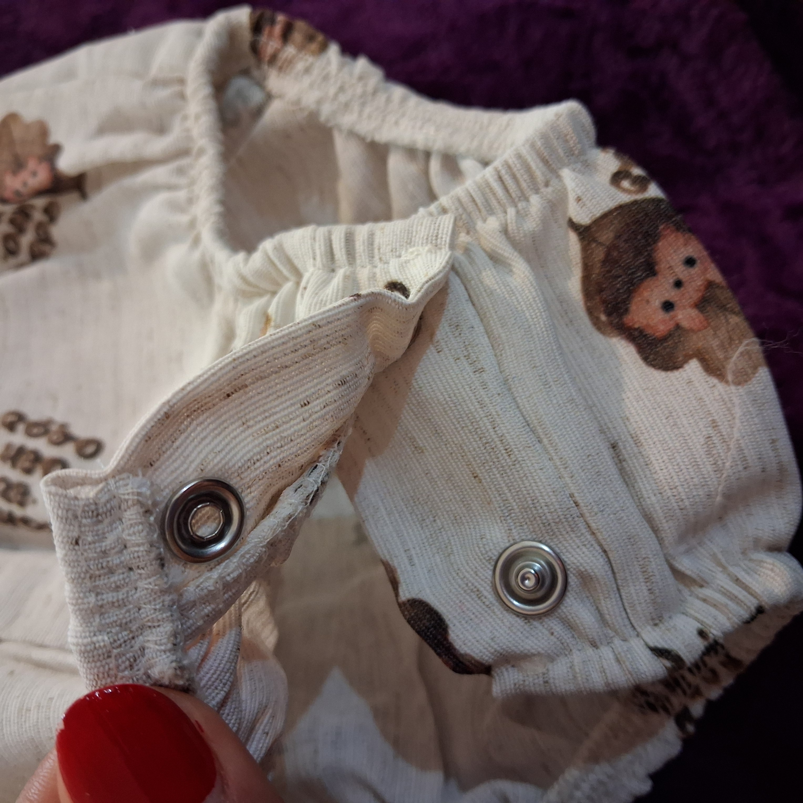سایز ۹ تا ۱۲ماه: سرشونه تا دودکمه فاق ۴۲ سانت - عرض سینه ۲۸ - آستین ۲۴ - قد شلوار ۳۸ ( کمر تا فاق ۱۸ و فاق تا مچ پا ۲۰ سانت) دور کمر شلوار ۴۲ کشسانی تا ۴۶ سانت