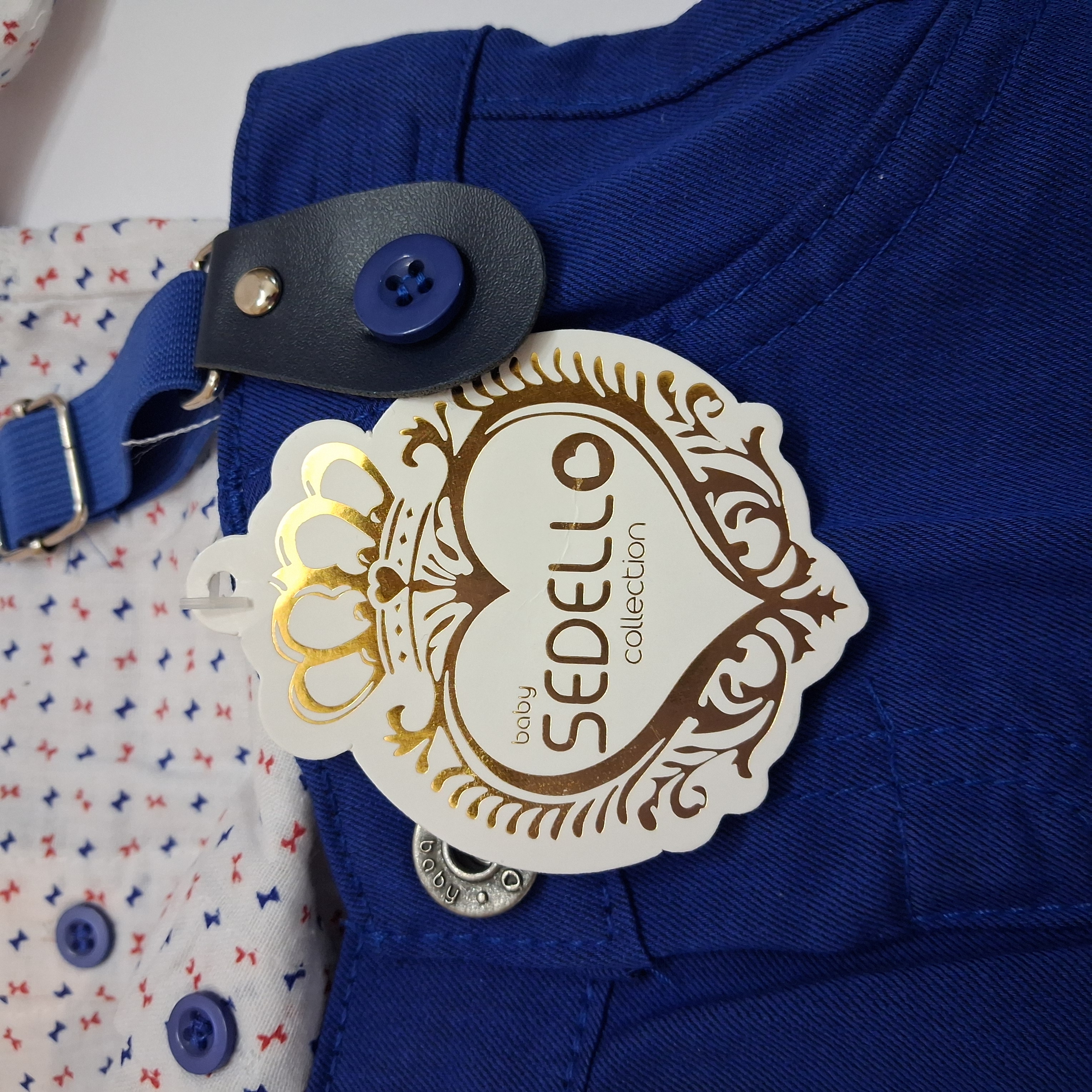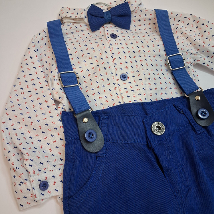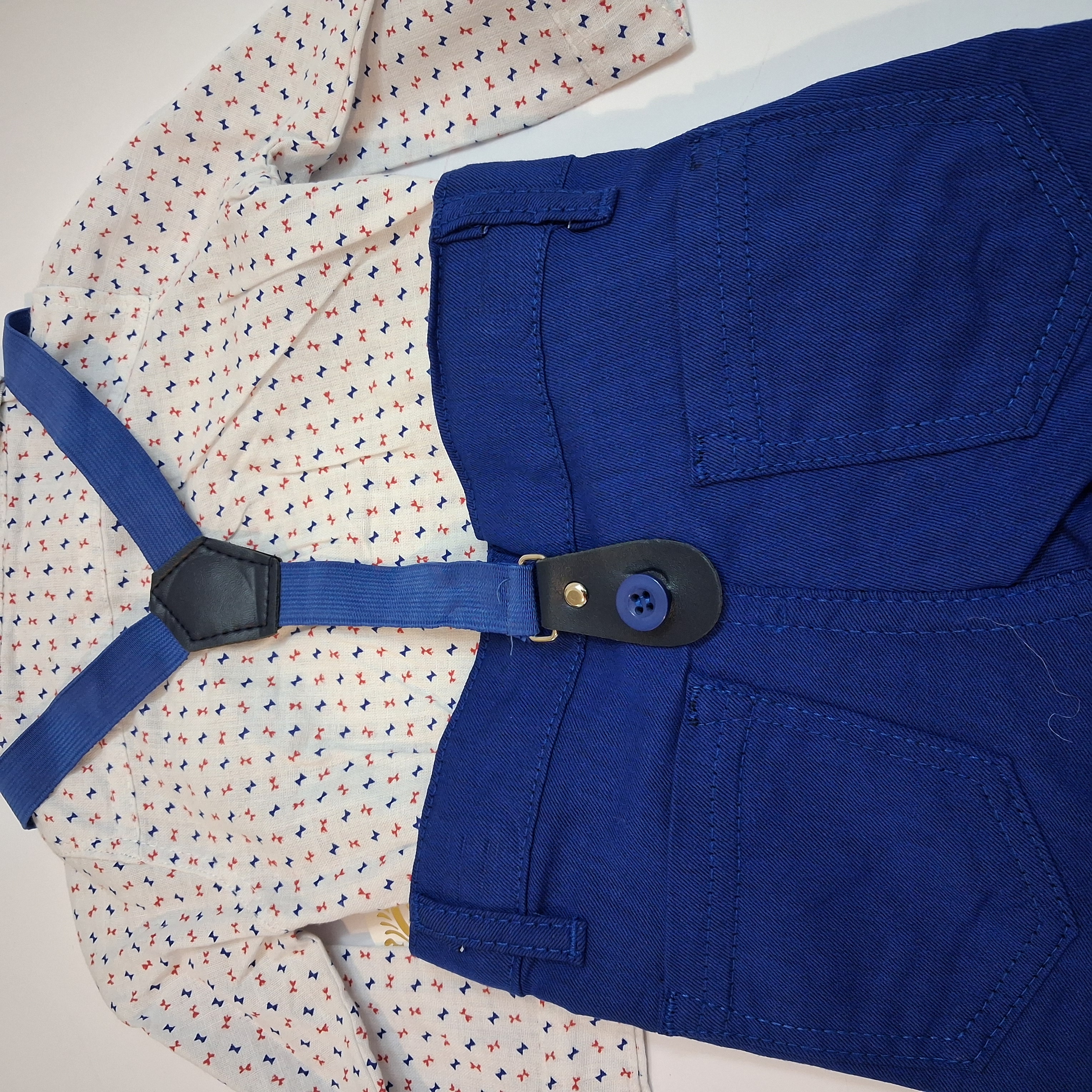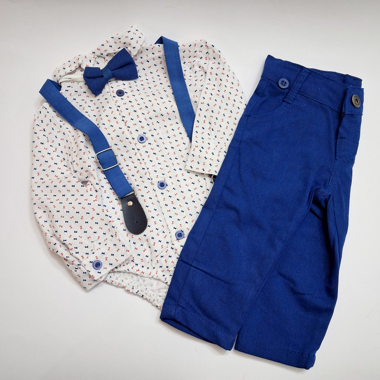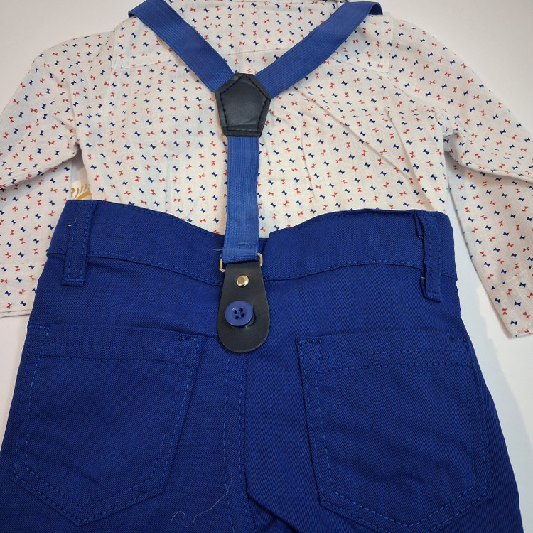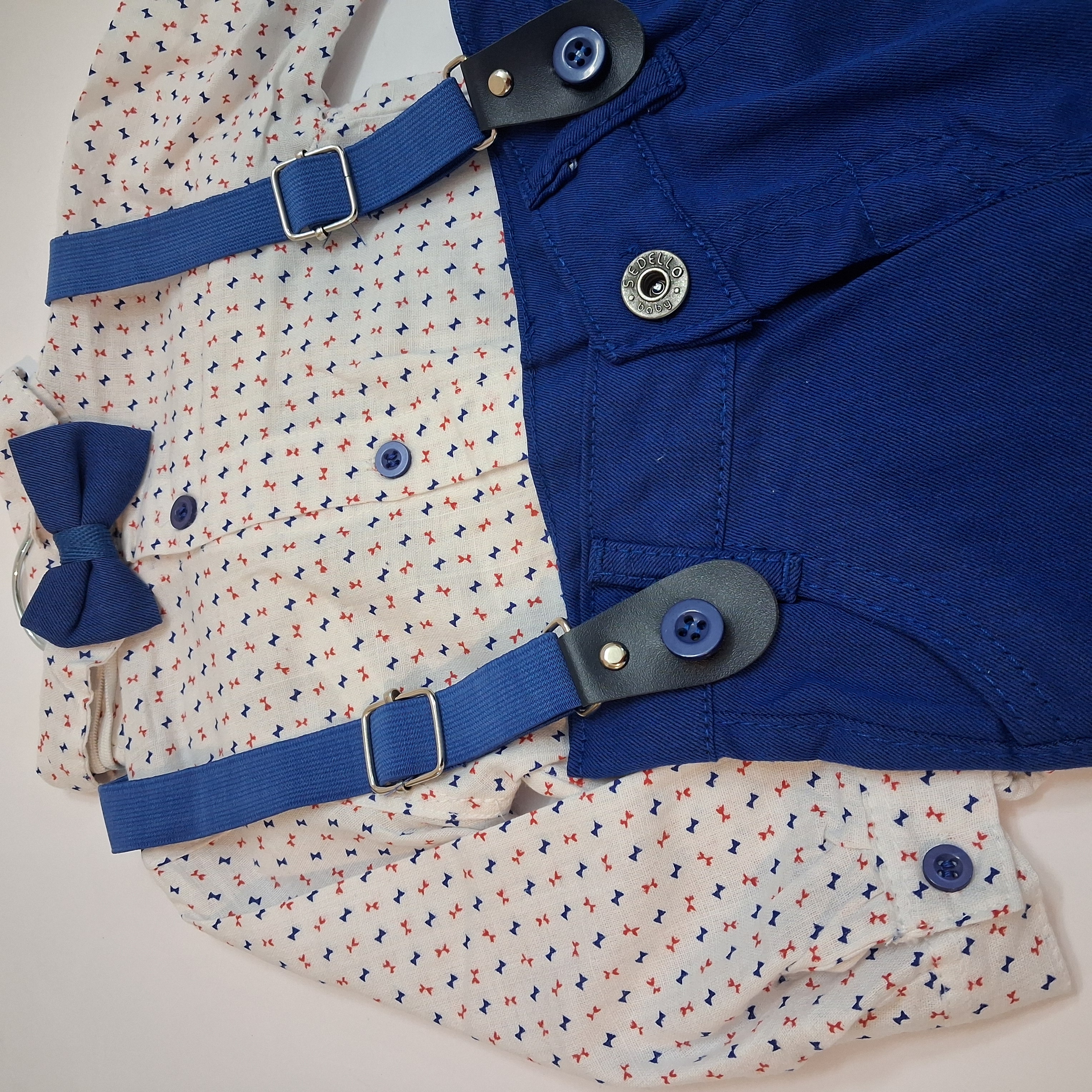 لباس ست بادی شلوار دوبنده ساسبندی نوزادی و بچگانه آبی پسرانه وارداتی سایزبندی از ۶ماه تا ۲سال