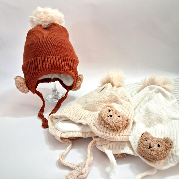 کلاه نوزادی و بچگانه بافت زمستانی طرح تدی مناسب ۸ماه تا ۳سال
