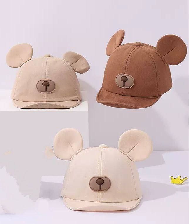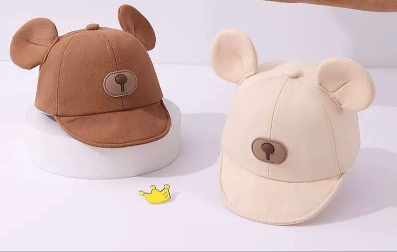 کلاه نقاب دار کتان نوزادی بچه گانه لبه تاشو گوشدار خرس چرمی