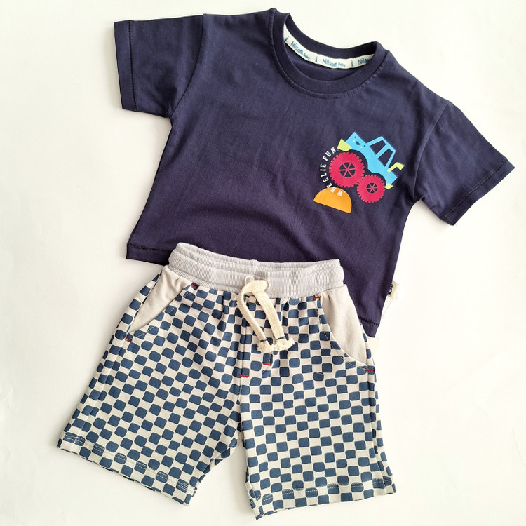 ست تیشرت و شلوارک نخ پنبه اعلا نوزادی بچه گانه پسرانه طرح ماشین