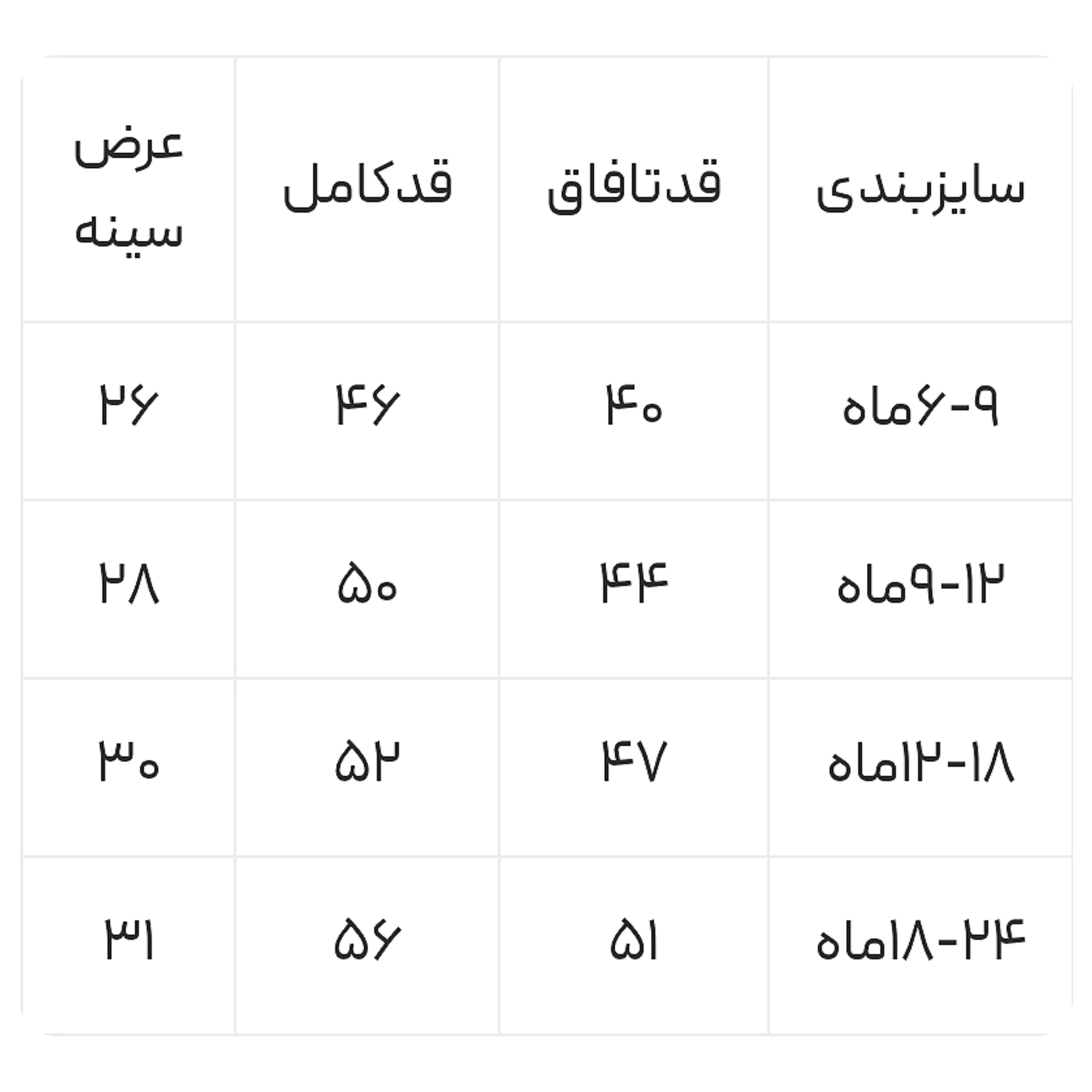 سایزبندی: ۶ ماه تا ۲ سال
