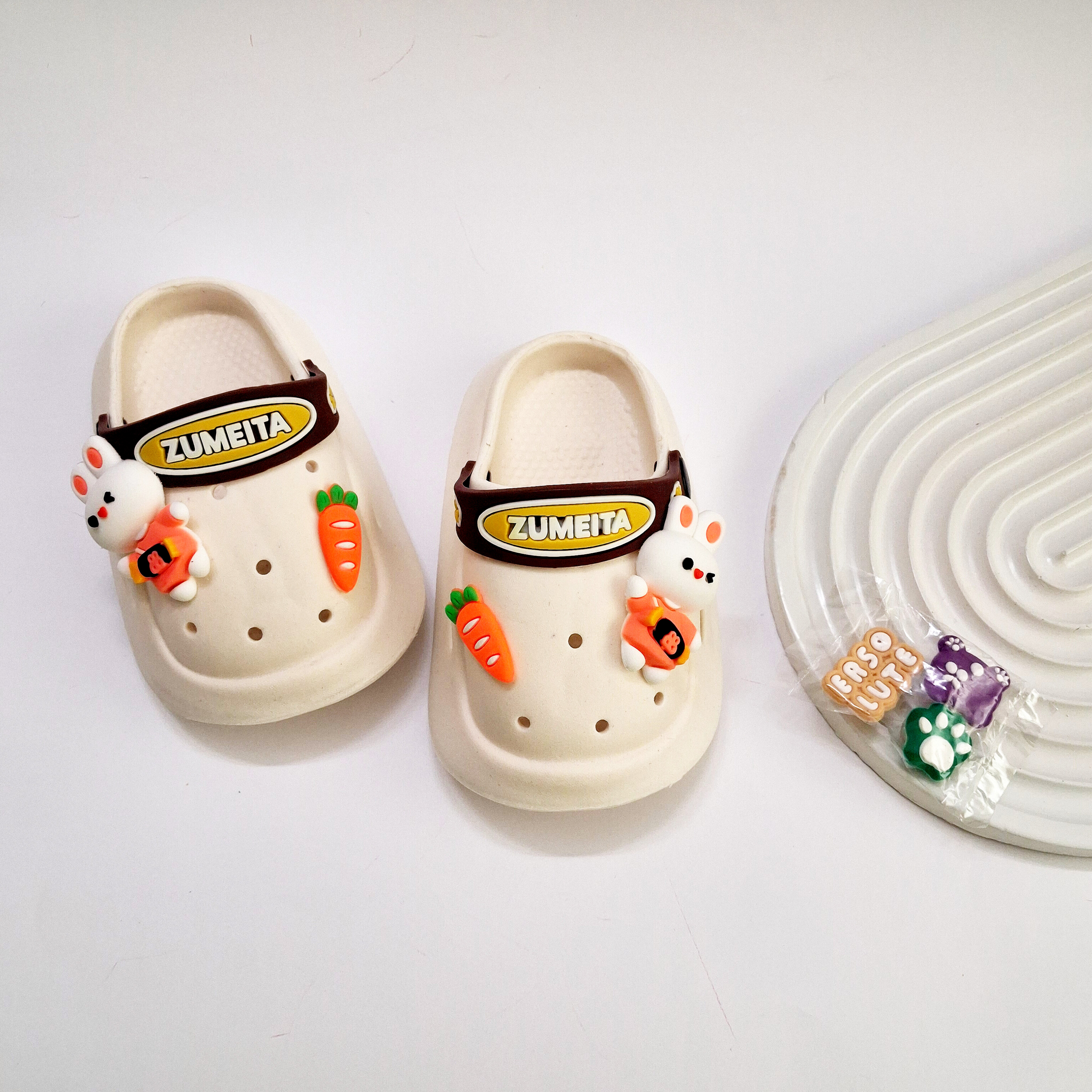 کراکس دمپایی بچگانه رنگ سفید شیری و کرم روشن شیک تدی سایزبندی ارسال ۱ تا ۵سال