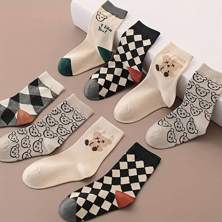 جوراب بچگانه نیمساق فانتزی خرس تدی اسکاچی خارجی